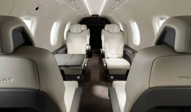 De svängbara sätena och ytorna inspirerade av PC-24-jet garanterar jetliknande komfort, med generöst benutrymme, infällbara hyllor och direkt tillgång till det trycksatta bagageutrymmet, även under flygning.