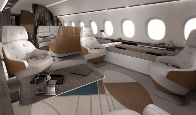 - Innovativ: Den stora innovationen i detta flygplan ligger i dess förmåga att erbjuda flera interiörlayoutkonfigurationer. Layouten på Falcon 10X är särskilt väl lämpad för affärsresenärernas behov och erbjuder exceptionell flexibilitet för att möta passagerarnas specifika krav.