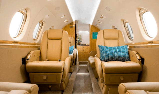 - Bekvämt: Hawker 750 privatjet har en rymlig och bekväm stuga.