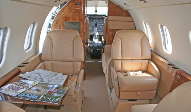Komfort är kärnan i denna privata jet, känd för att ha en av de största stugorna i Learjet-serien. Faktum är att du hittar stora, bekväma säten ombord på denna privata jet, utformad och utformad för att erbjuda gott om ben- och armbågsrum. Beroende på dess konfiguration kan Learjet 55 rymma upp till 8 passagerare.